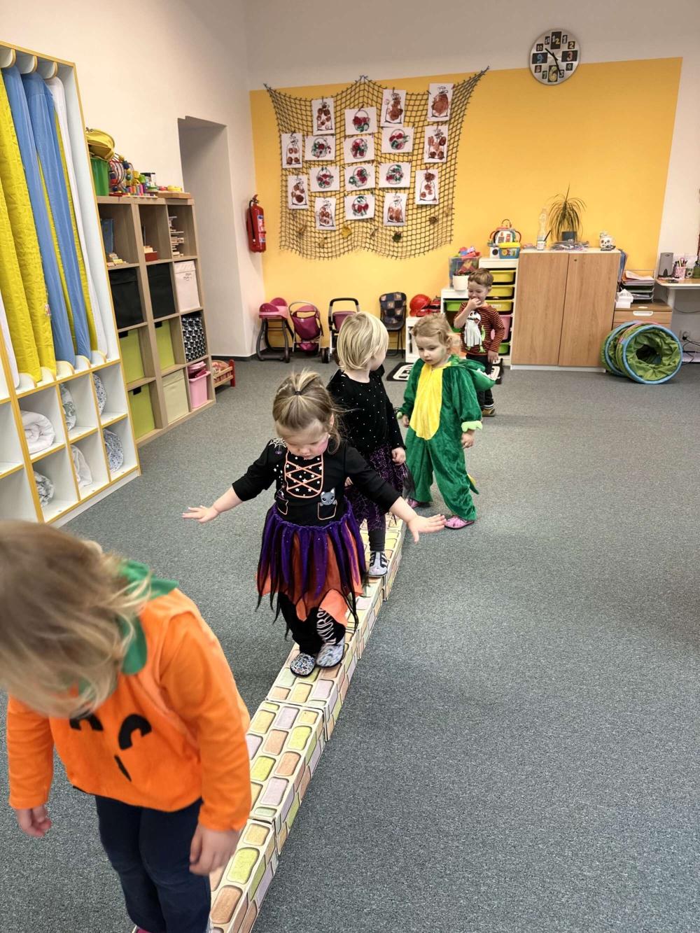 Co může byt lepšího než nové emoce a zážitky s kamarády, plné smíchu, radosti a překvapení? Těch jsme měli tento měsíc opraavdu dost! :) Poprvé jsme se vydali na výlet do solné jeskyně a ve školce jsme přivítali divadlo s krásnou pohádkou o jednom neobyčejném dni Páti a Máti. Naše šikovné ručičky pilně pracovaly a vytvořily spoustu tematických výrobků: holínky v kalužích, otisky listů, obrázky lesních zvířátek a houbiček. Jako vždy jsme se těšili na setkání s babičkou Bárou a užívali si veselé chvíle na procházkách a hřištích, kde jsme sbírali listy, kaštany a obdivovali krásu podzimu. Na závěr měsíce jsme oslavili Halloween, kde jsme hodně tančili, soutěžili a vyrobili jsme si halloweenský věneček, který teď zdobí pokojíčky našich Bobříků. Listopad slibuje být ještě zajímavější, už se těšíme na další dobrodružství :)